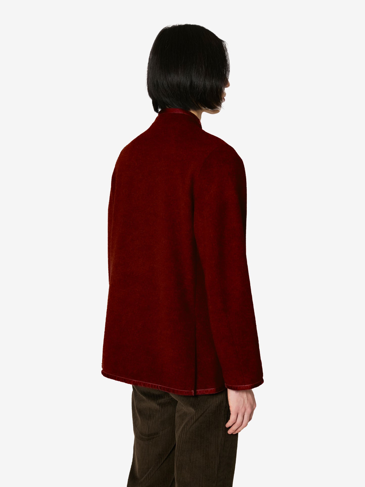 Sophisticated and timeless, this signature jacket blends heritage tailoring with contemporary clarity. Defined by a sculptural high neck, and straight, not structured sleeves that evoke a sense of effortless elegance.