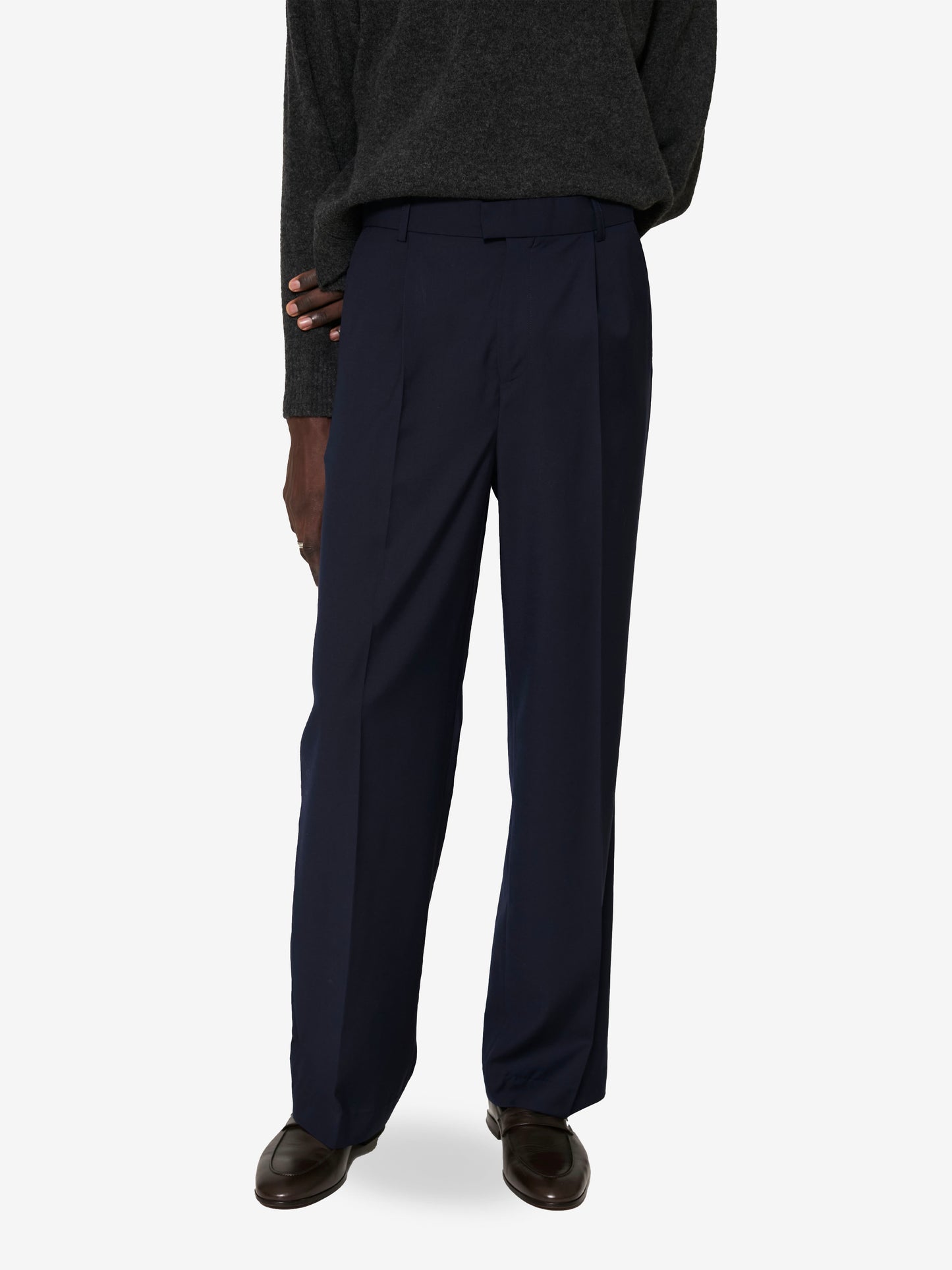 Crafted from fine wool, the piece pairs effortlessly with both elevated and casual looks, whether styled with a blazer or knits. A true staple, designed for those who embrace enduring comfort, quiet strength, and intentional simplicity.