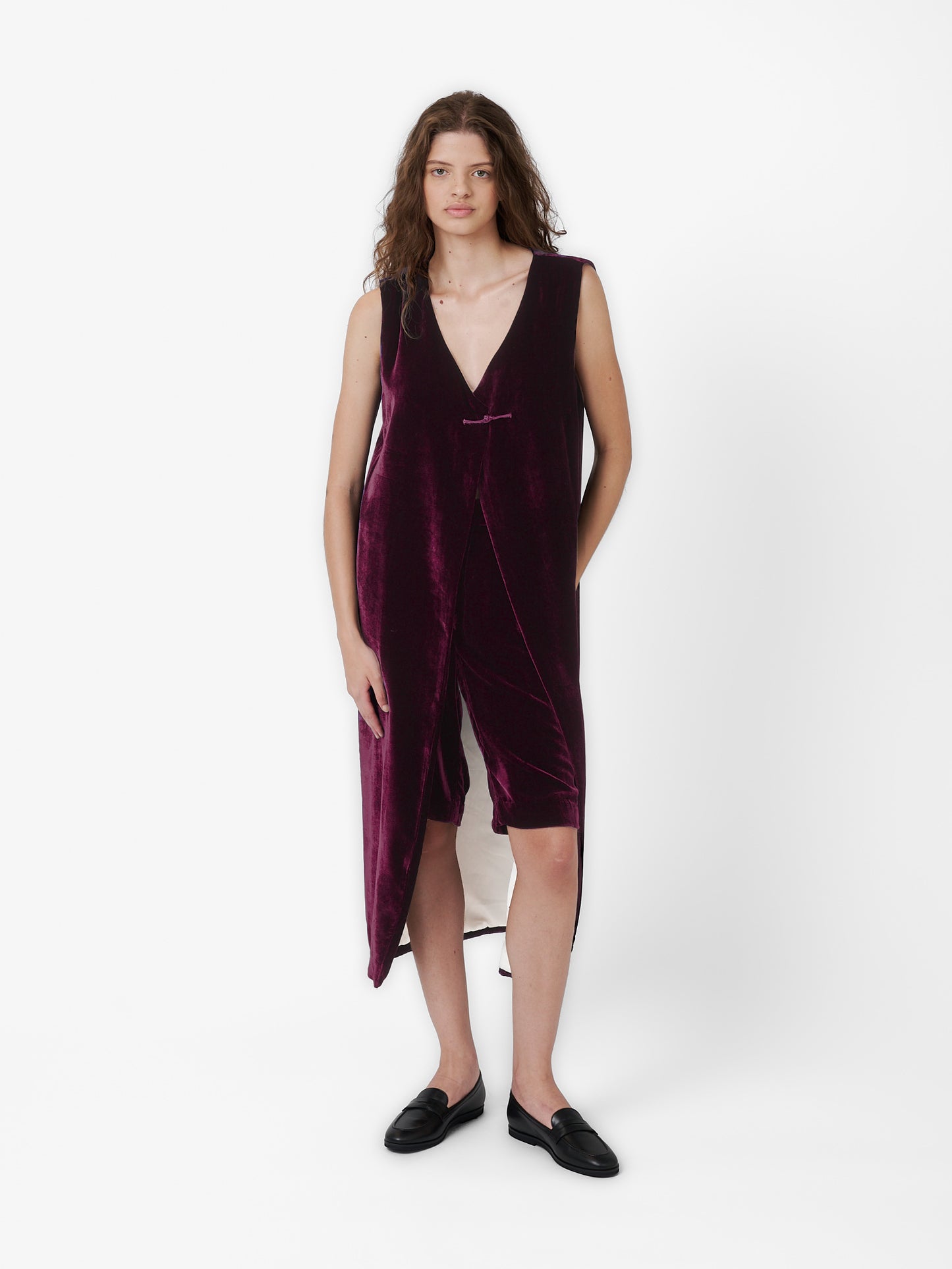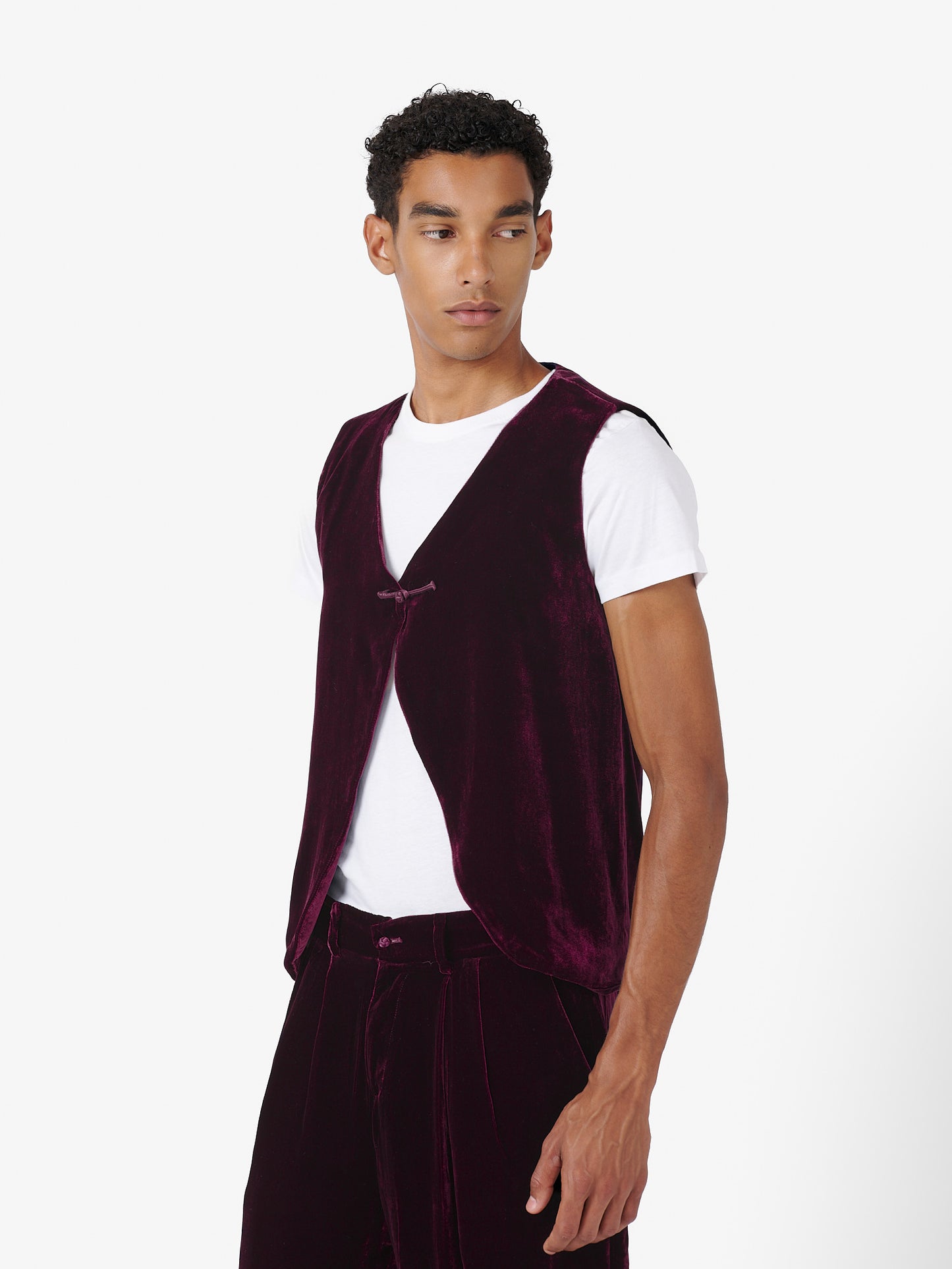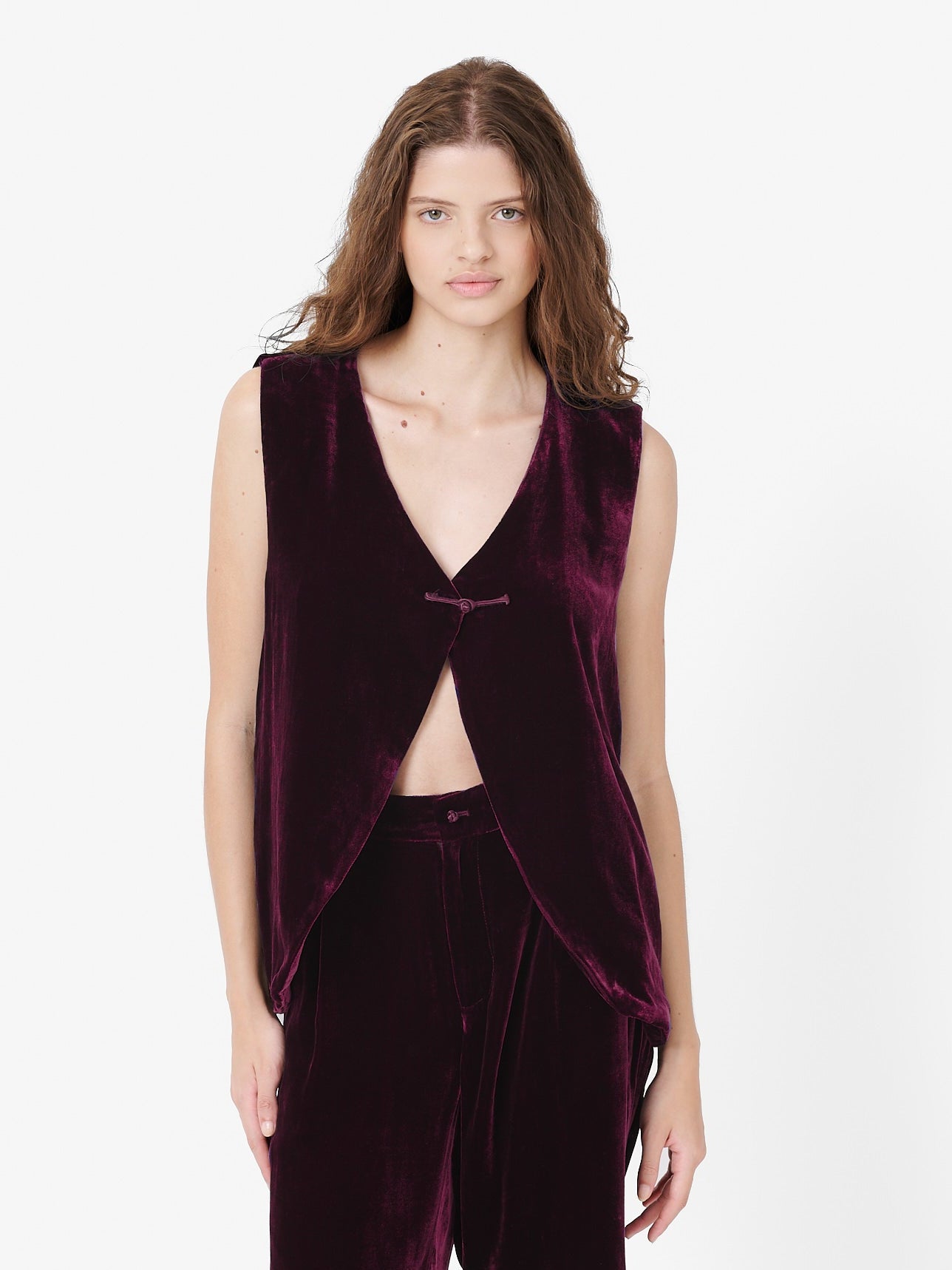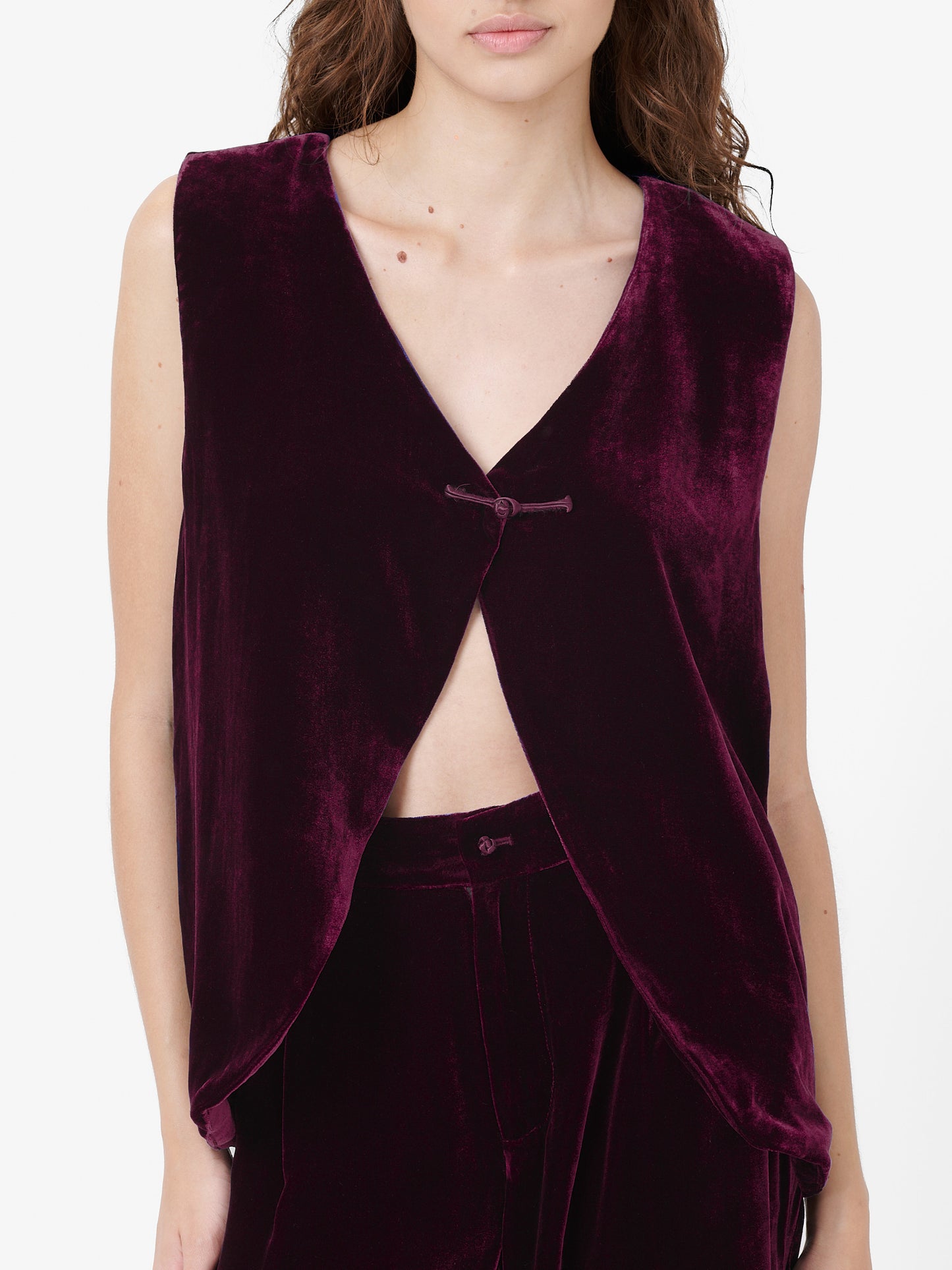 Fumoar Long Vest in Burgundy Velvet