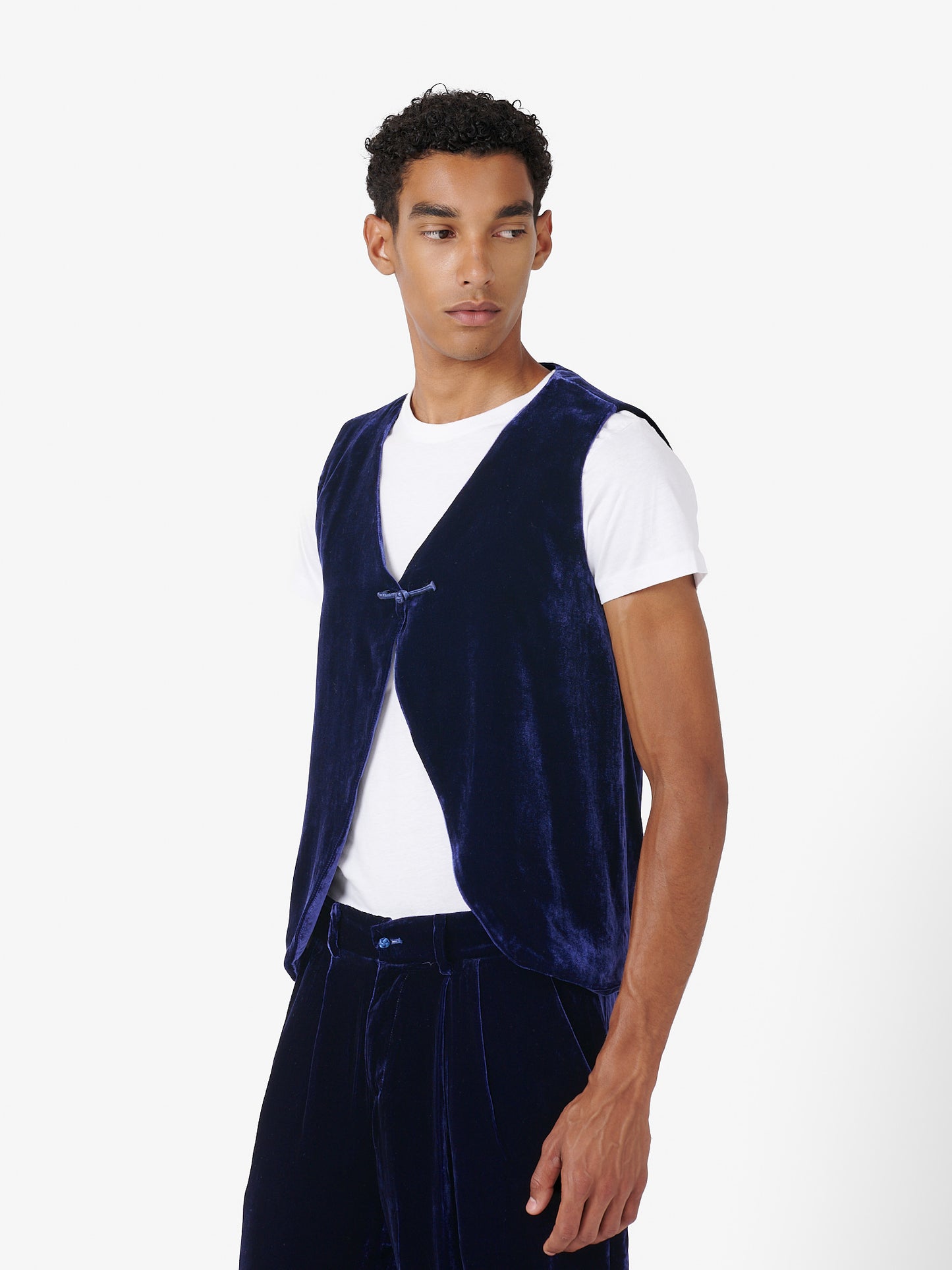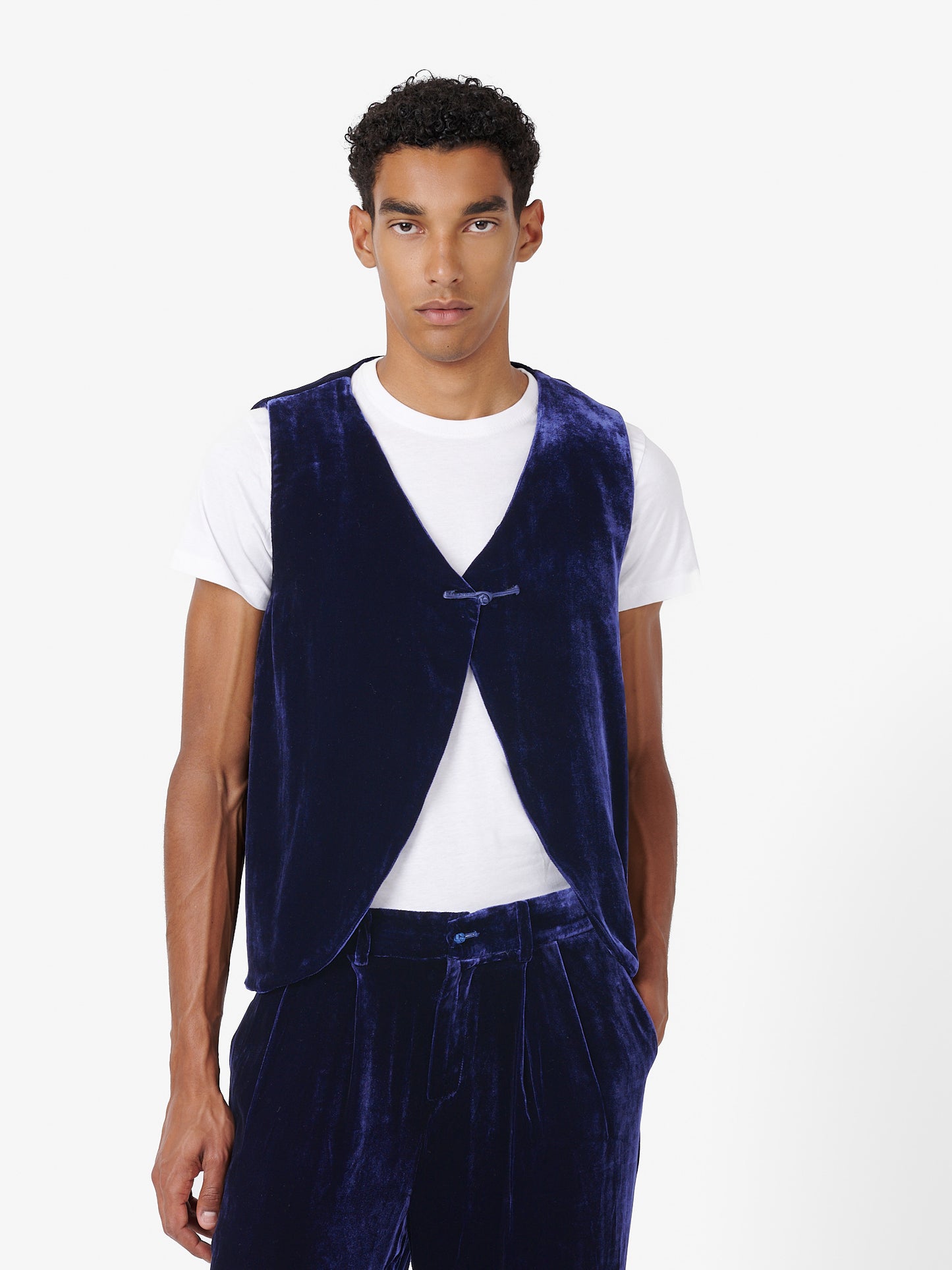 Fumoar Short Vest in Blue Velvet