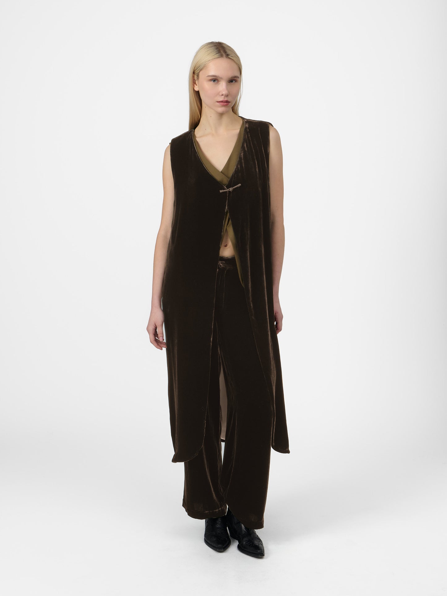 Fumoar Long Vest in Cacao Velvet